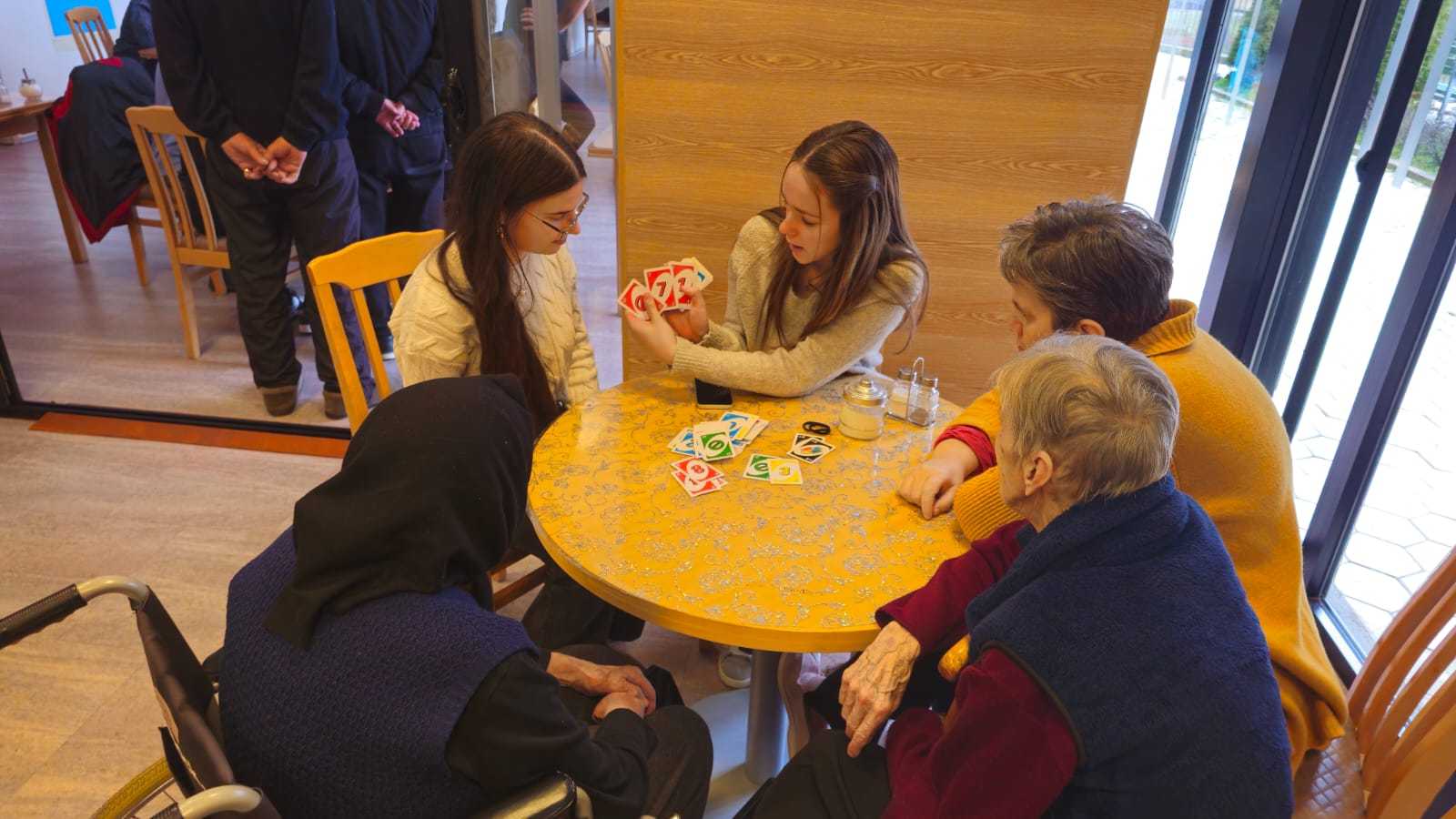 На иницијативу ученика волонтера наше школе, а у сусрет Међународном дану људских права, посјетили смо кориснике и запослене у Дому старих „Пљевља”. У сјајној атмосфери, пуној смијеха и добре енергије, уживали смо, дружили се и играли друштвене игре које су своју вриједност и омиљеност потврдиле трајањем упркос појави модерних технологија. Оне су биле додатни повод да се окупимо, разговарамо и на квалитетан начин проведемо слободно вријеме.